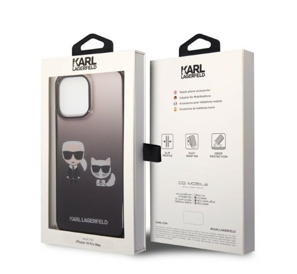 A Karl Lagerfeld Gradient Ikonik Karl & Choupette hátlap tok stílusos és tartós védelmet nyújt a készülékednek. A fekete szilikon tok rugalmas és ütésálló, megvédi a telefont a karcolásoktól és ütődésektől. Az egyedi gradient dizájn és a Karl & Choupette grafika különleges megjelenést kölcsönöz. A pontos kivágások révén minden gomb és csatlakozó könnyen elérhető marad, így a telefon teljes mértékben használható.