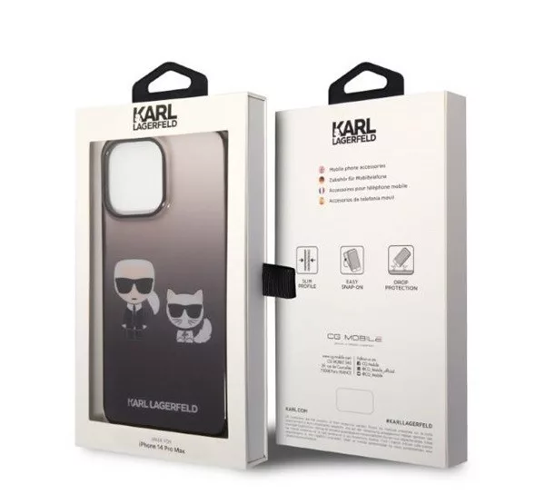 A Karl Lagerfeld Gradient Ikonik Karl & Choupette hátlap tok stílusos és tartós védelmet nyújt a készülékednek. A fekete szilikon tok rugalmas és ütésálló, megvédi a telefont a karcolásoktól és ütődésektől. Az egyedi gradient dizájn és a Karl & Choupette grafika különleges megjelenést kölcsönöz. A pontos kivágások révén minden gomb és csatlakozó könnyen elérhető marad, így a telefon teljes mértékben használható.