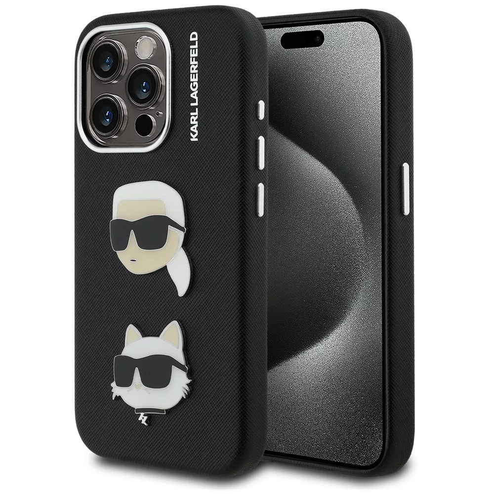 Karl Lagerfeld Grained PU K&CH Heads iPhone 15 Pro Max hátlap tok, fekete