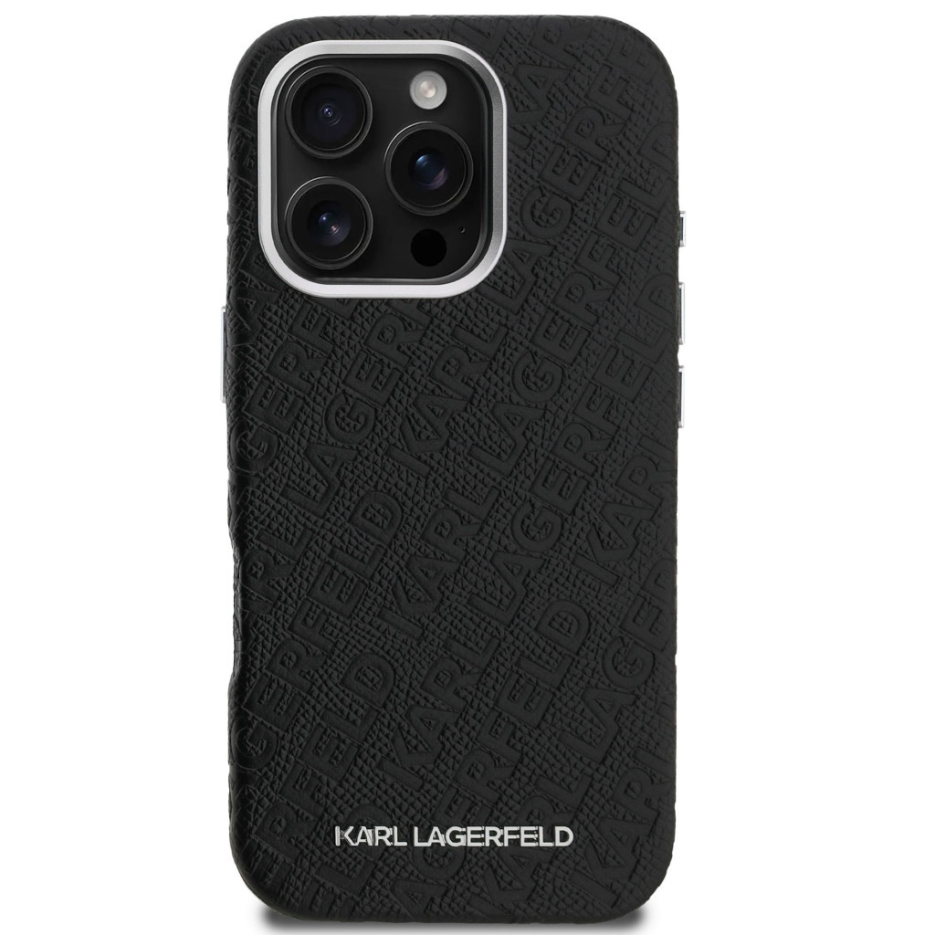 Karl Lagerfeld Grained PU Repeated Logo iPhone 16 Pro MagSafe kompatibilis hátlap tok, fekete