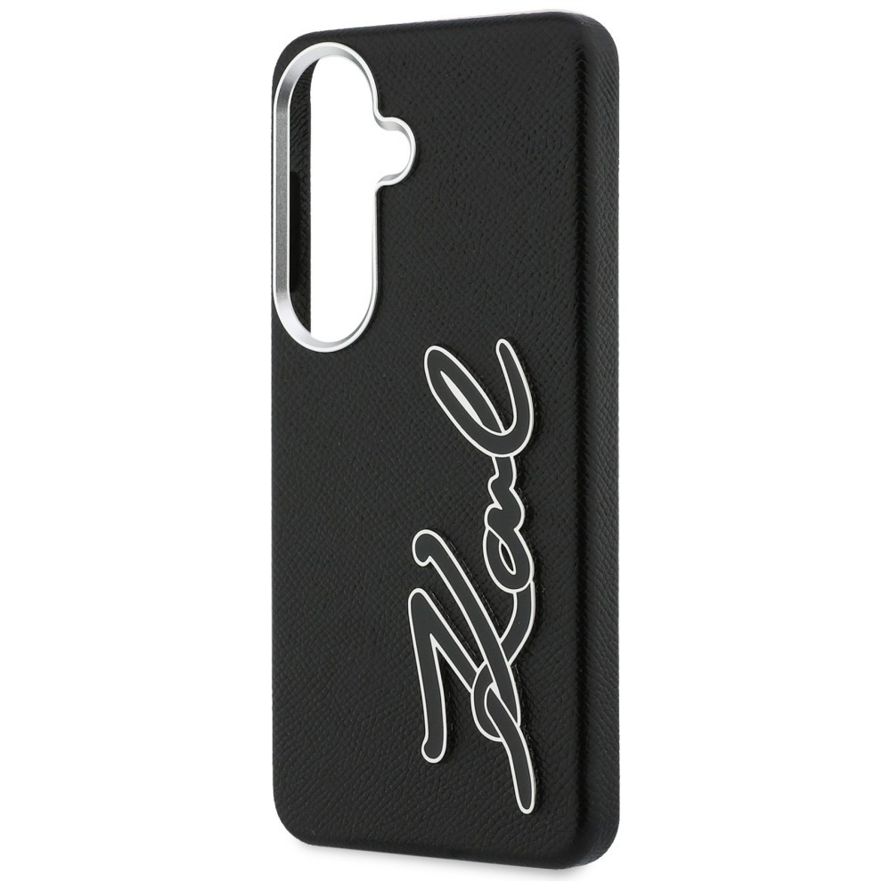 Karl Lagerfeld Grained Signature Metal Resin Logo Samsung Galaxy S26 tok, fekete