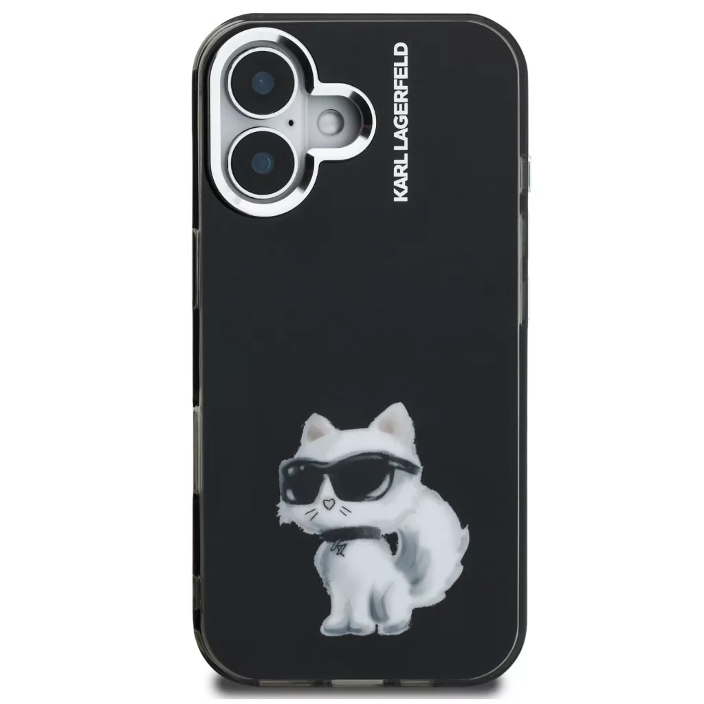 Karl Lagerfeld IML Aquarelle Choupette iPhone 16 hátlap tok, fekete