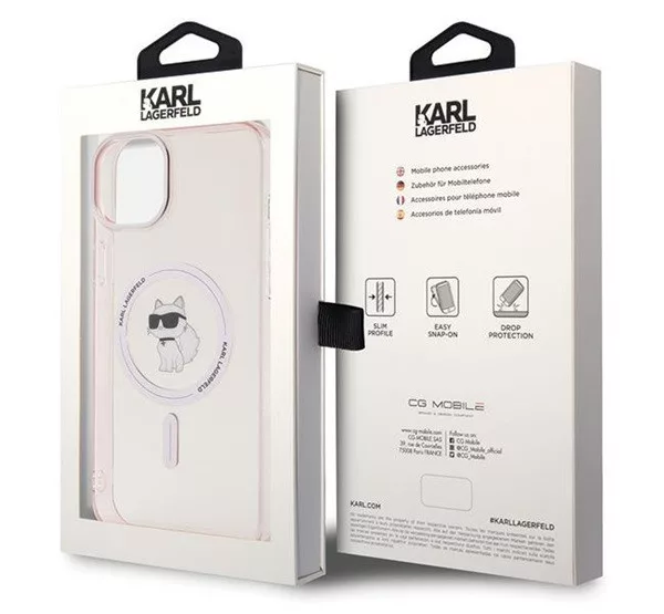 Karl Lagerfeld IML Choupette MagSafe Apple iPhone 15 Plus hátlap tok, rózsaszín