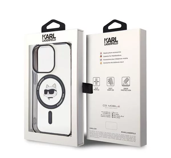 Karl Lagerfeld IML Choupette's Head MagSafe Apple iPhone 15 Pro hátlap tok, átlátszó