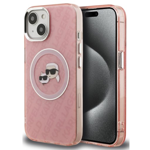 Karl Lagerfeld IML K&CH Heads Repeated Logo iPhone 15 MagSafe kompatibilis hátlap tok, rózsaszín