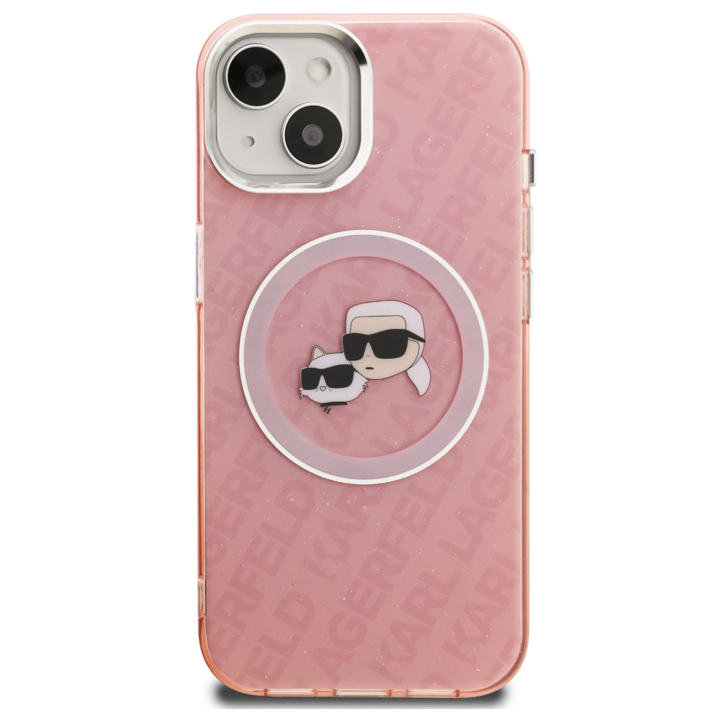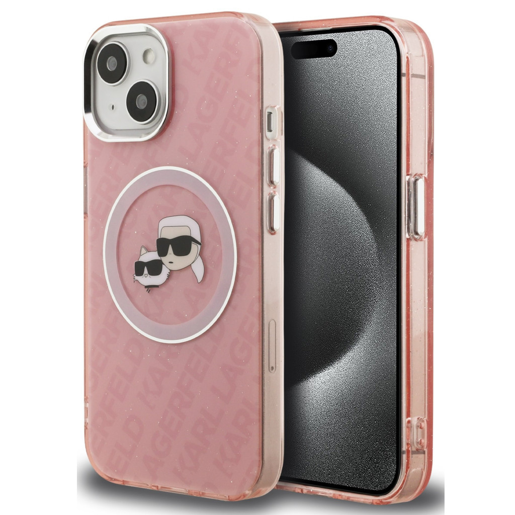 Karl Lagerfeld IML K&CH Heads Repeated Logo iPhone 15 MagSafe kompatibilis hátlap tok, rózsaszín Karl Lagerfeld IML K&CH Heads Repeated Logo iPhone 15 MagSafe kompatibilis hátlap tok, rózsaszín