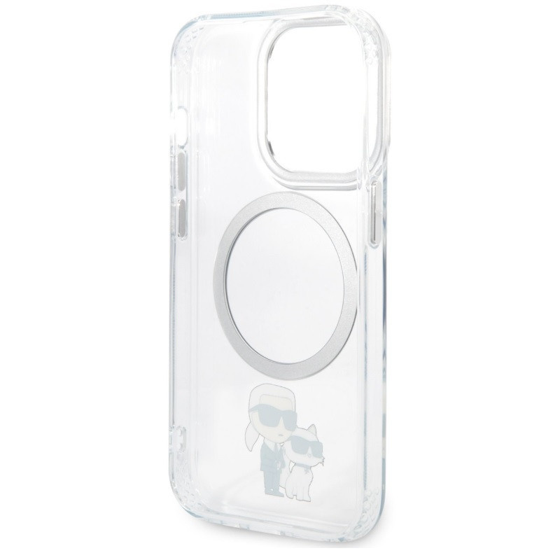 A Karl&Choupette MagSafe tok tökéletesen kiemeli iPhone készüléked egyedi kialakítását a híres tervező, Karl Lagerfeld és macskája, Choupette ábrázolásával. A grafika a gyűrűn belül középen helyezkedik el, mégis visszafogott marad, és tökéletesen kiegészíti a tok általános stílusát.