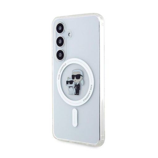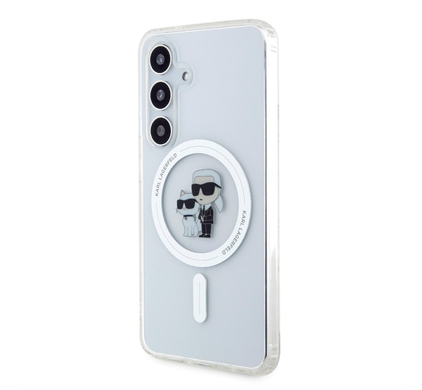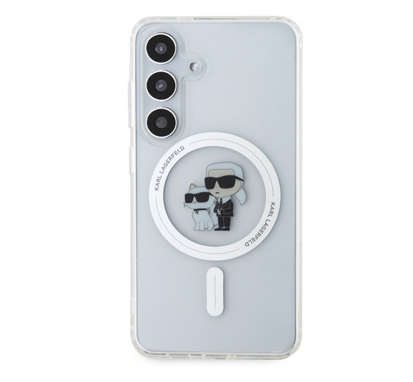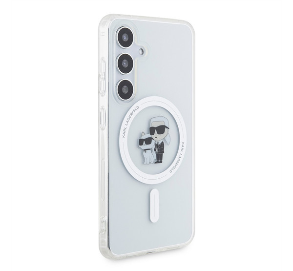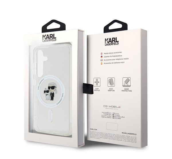 A Karl Lagerfeld IML Karl and Choupette MagSafe hátlap tok egy prémium minőségű, átlátszó védőtok, amely elegáns és luxus megjelenést kölcsönöz a telefonodnak. A MagSafe kompatibilitás lehetővé teszi a vezeték nélküli töltést és más MagSafe kiegészítők használatát anélkül, hogy le kellene venni a tokot.