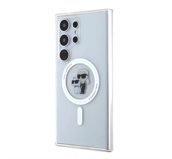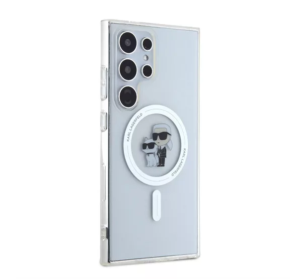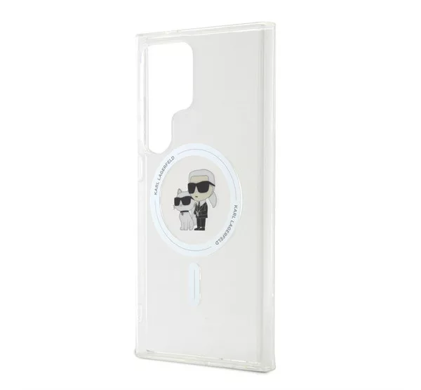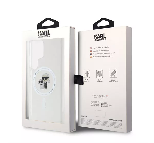A Karl Lagerfeld IML Karl and Choupette MagSafe hátlap tok egy prémium minőségű, átlátszó védőtok, amely elegáns és luxus megjelenést kölcsönöz a telefonodnak. A MagSafe kompatibilitás lehetővé teszi a vezeték nélküli töltést és más MagSafe kiegészítők használatát anélkül, hogy le kellene venni a tokot.