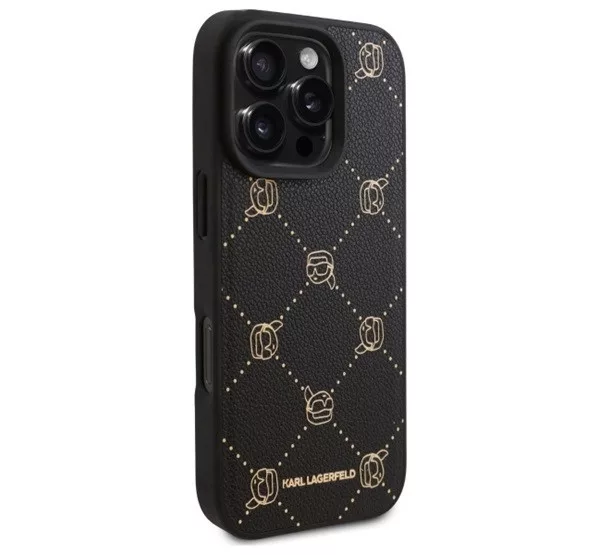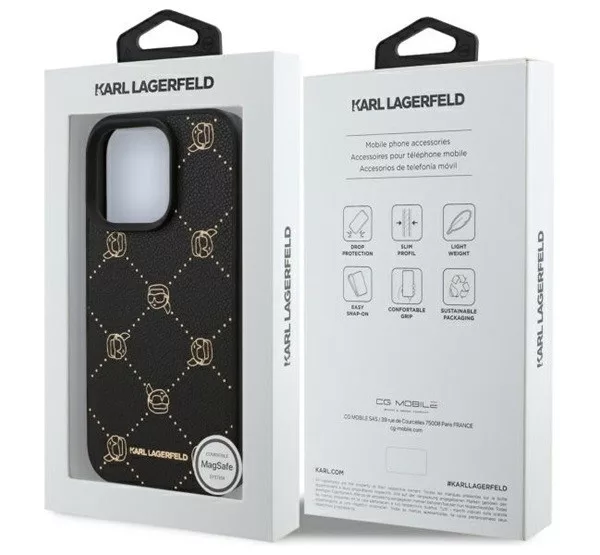Ez az elegáns tok biztosan felhívja magára a figyelmet szokatlan kialakításával. A központi motívum Karl Lagerfeld fejének finom körvonalai, egységes geometriai mintába rendezve, ami elegáns és modern jelleget kölcsönöz. A környezetbarát bőrből készült táskát a híres divatház alján elhelyezett logó díszíti tovább.