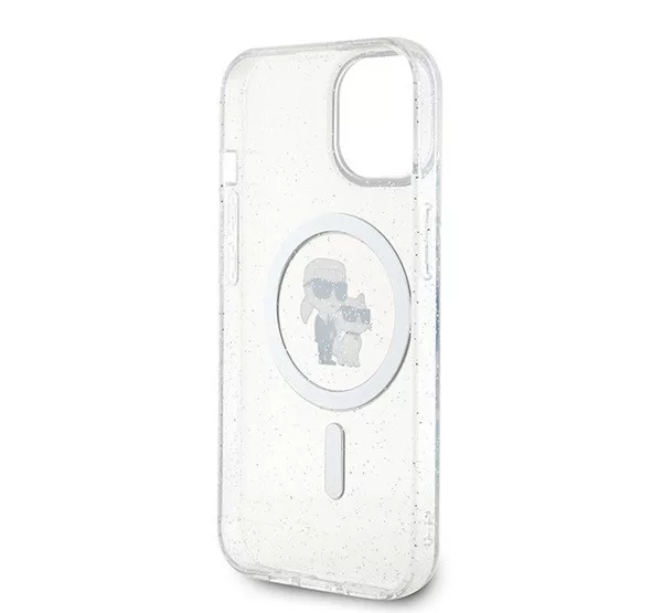 Karl Lagerfeld Karl&Choupette Glitter MagSafe Apple iPhone 15 Plus hátlap tok, átlátszó