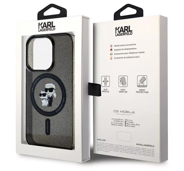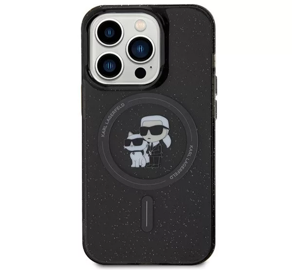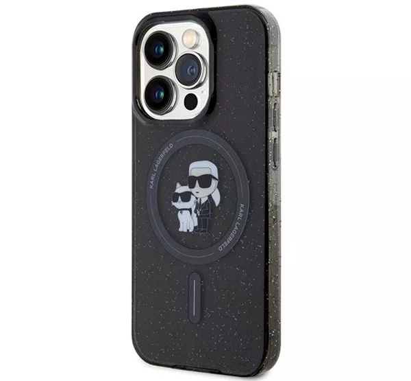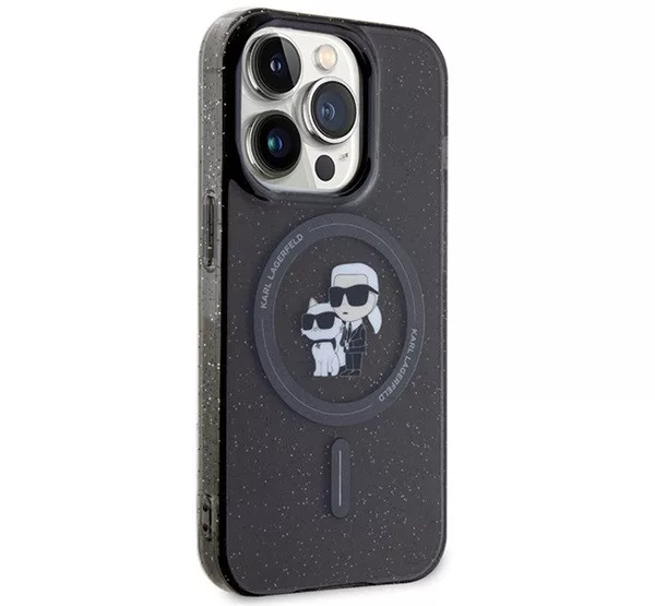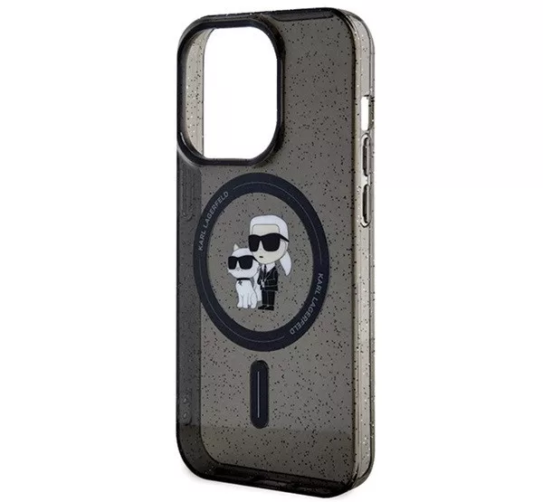 Karl Lagerfeld Karl&Choupette Glitter MagSafe Apple iPhone 15 Pro hátlap tok, fekete