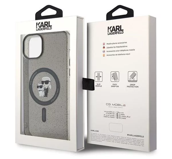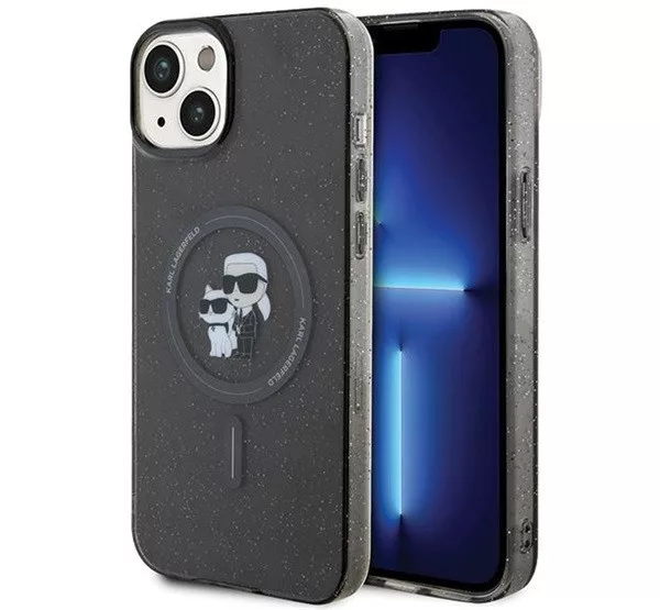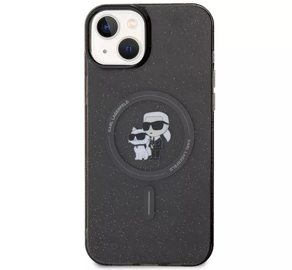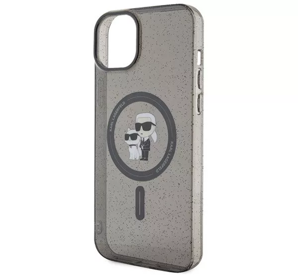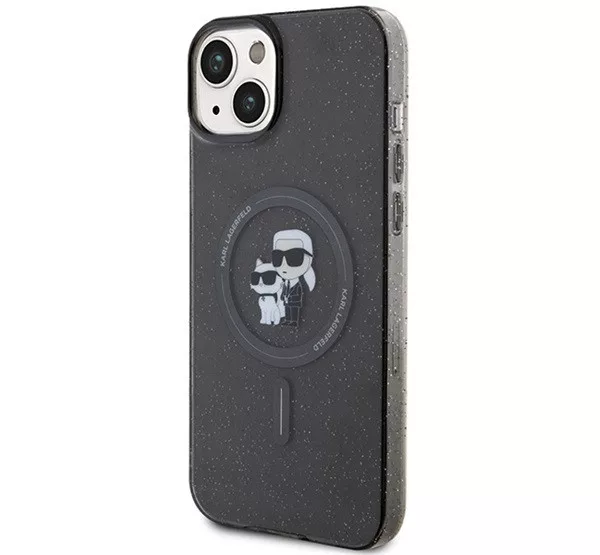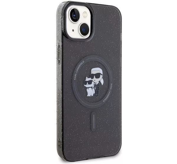 Karl Lagerfeld Karl&Choupette Glitter MagSafe Apple iPhone 15 hátlap tok, fekete