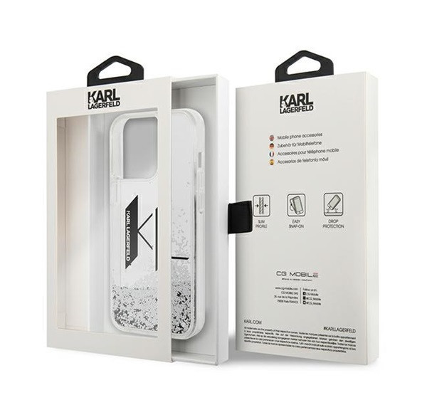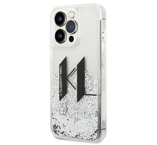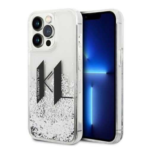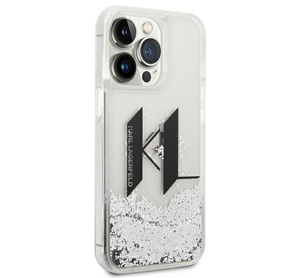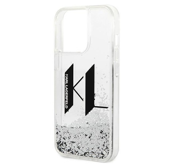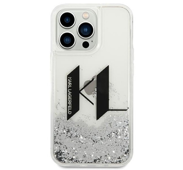 Karl Lagerfeld Liquid Glitter Big KL Apple iPhone 14 Pro hátlap tok, ezüst