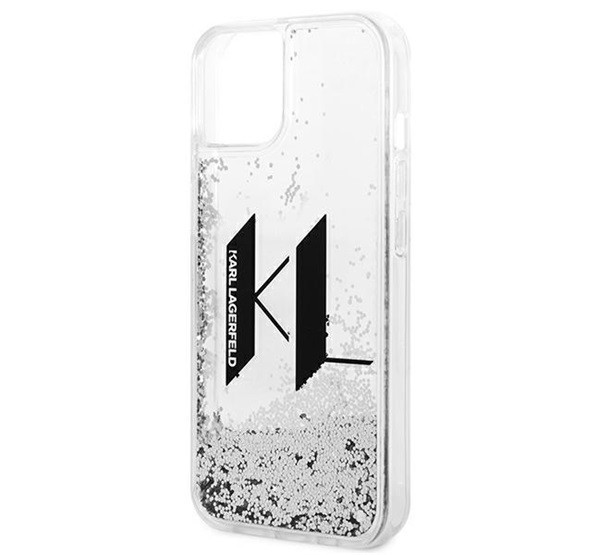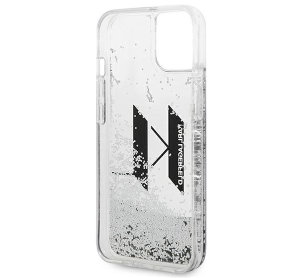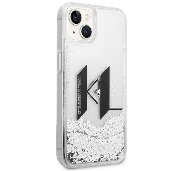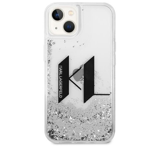 Karl Lagerfeld Liquid Glitter Big KL Apple iPhone 14 hátlap tok, ezüst