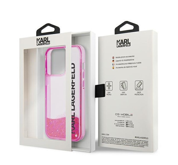 Karl Lagerfeld Liquid Glitter Elong Apple iPhone 14 Pro hátlap tok, rózsaszín
