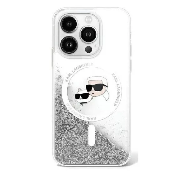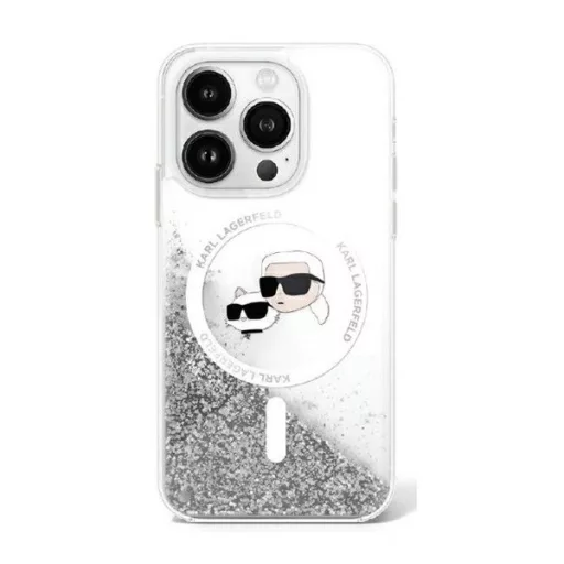 Karl Lagerfeld Liquid Glitter Karl&Choupette Head iPhone 16 Pro Max Magsafe hátlap tok, átlátszó KLHMP16XLGKCSGH