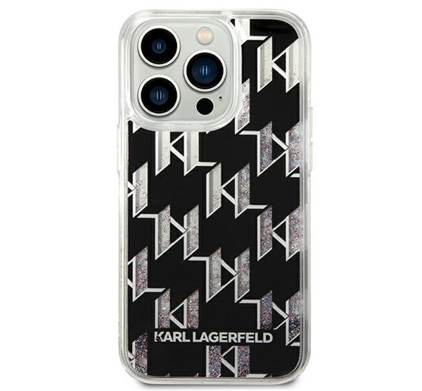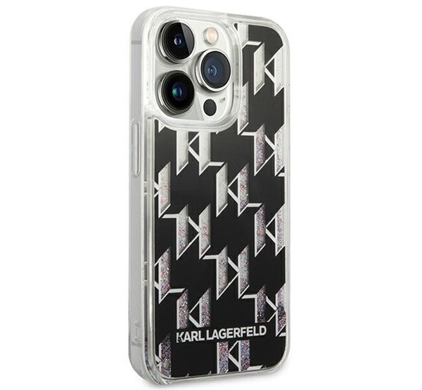 Karl Lagerfeld Liquid Glitter Monogram Apple iPhone 14 Pro Max hátlap tok, fekete