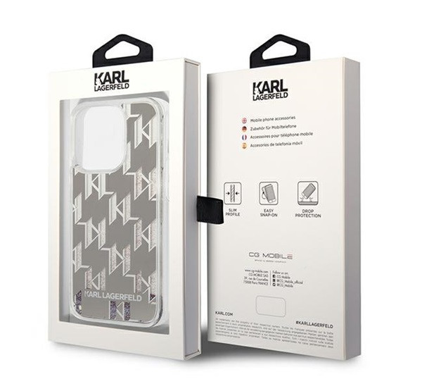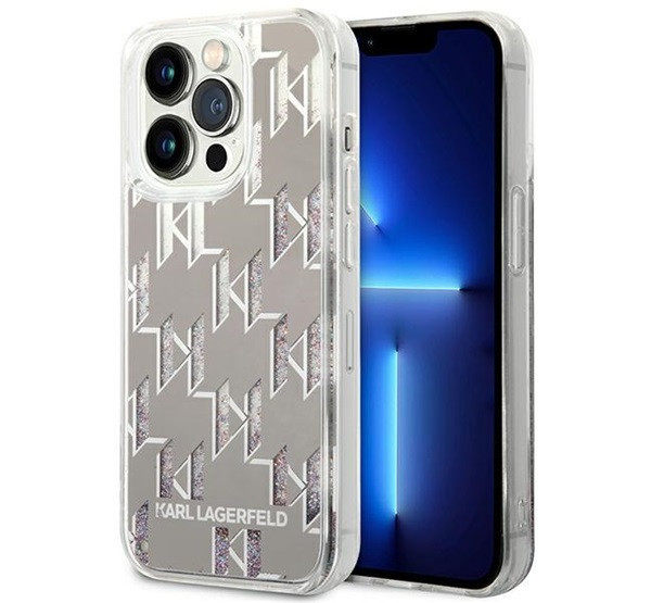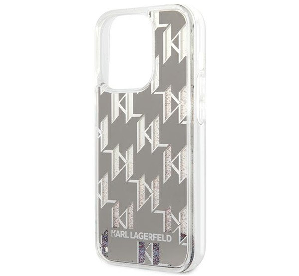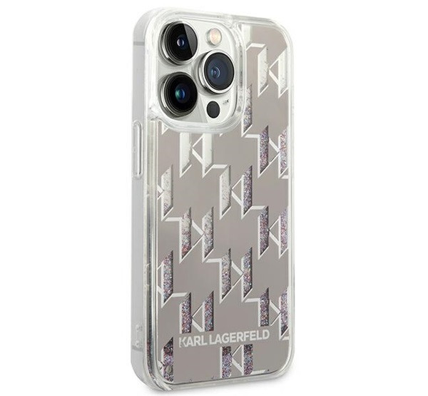 Karl Lagerfeld Liquid Glitter Monogram Apple iPhone 14 Pro hátlap tok, ezüst