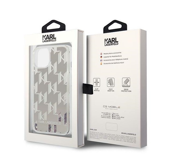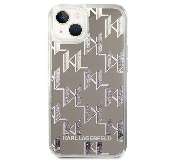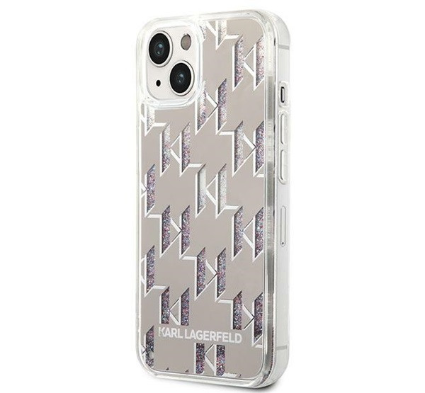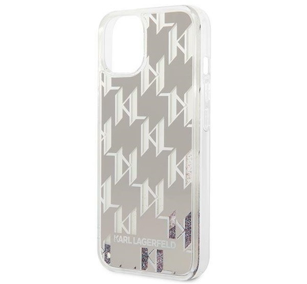 Karl Lagerfeld Liquid Glitter Monogram Apple iPhone 14 hátlap tok, ezüst