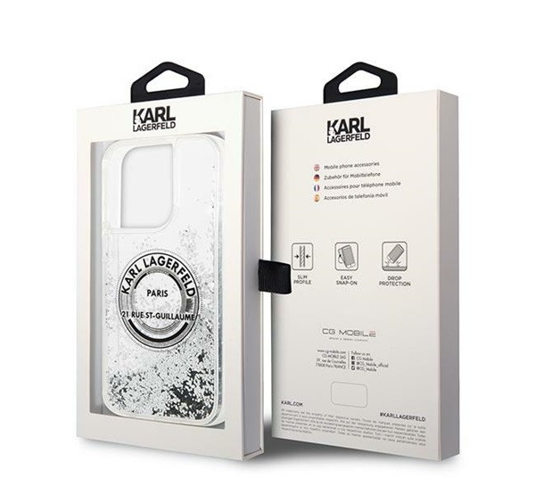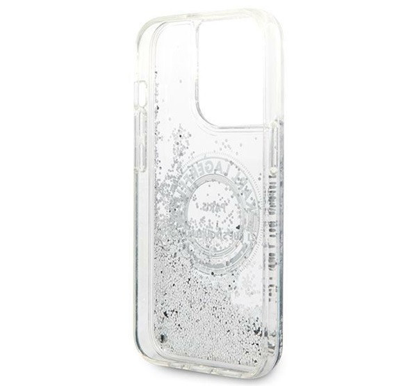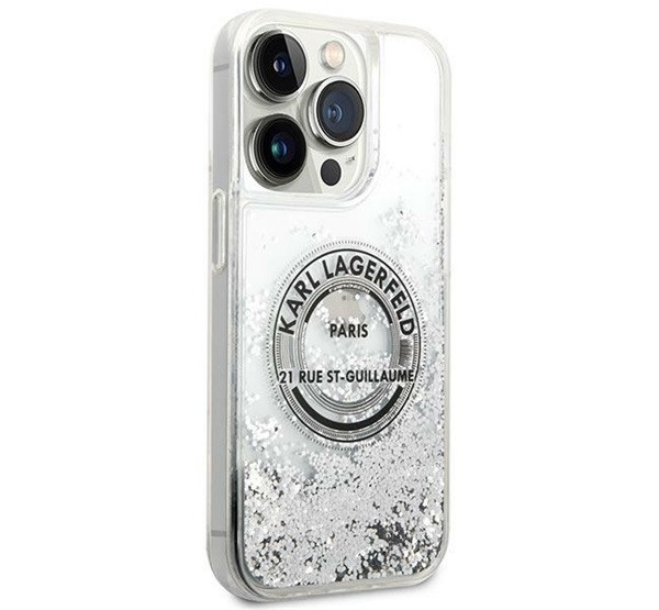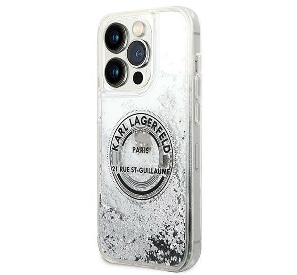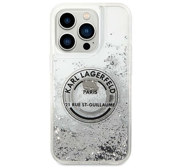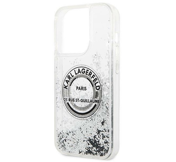 Karl Lagerfeld Liquid Glitter RSG Apple iPhone 14 Pro hátlap tok, ezüst