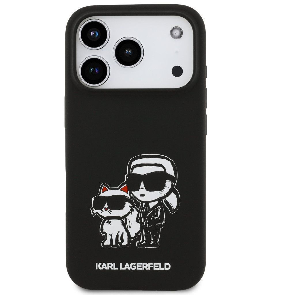 Karl Lagerfeld Liquid Silicone K&CH Sketch Apple iPhone 17 Pro MagSafe kompatibilis hátlap tok, fekete