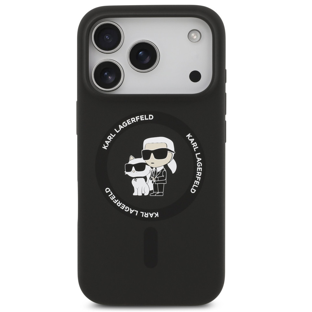 Karl Lagerfeld Liquid Silicone Karl and Choupette MagSafe iPhone 17 Pro hátlap tok, fekete