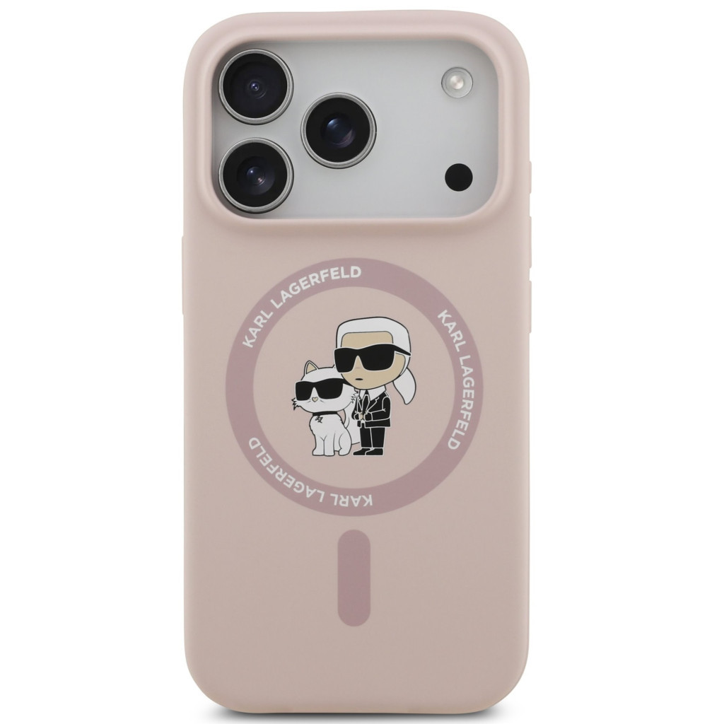 Karl Lagerfeld Liquid Silicone Karl and Choupette MagSafe iPhone 17 Pro hátlap tok, rózsaszín