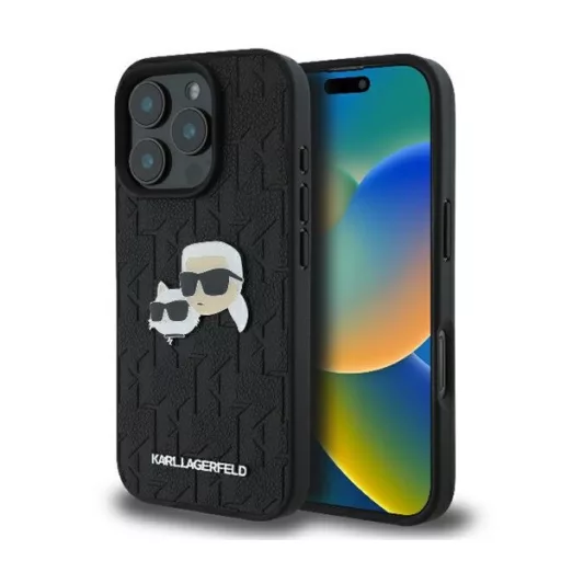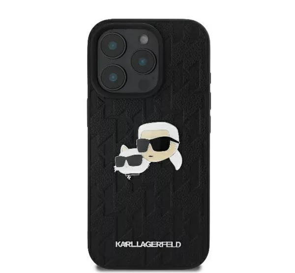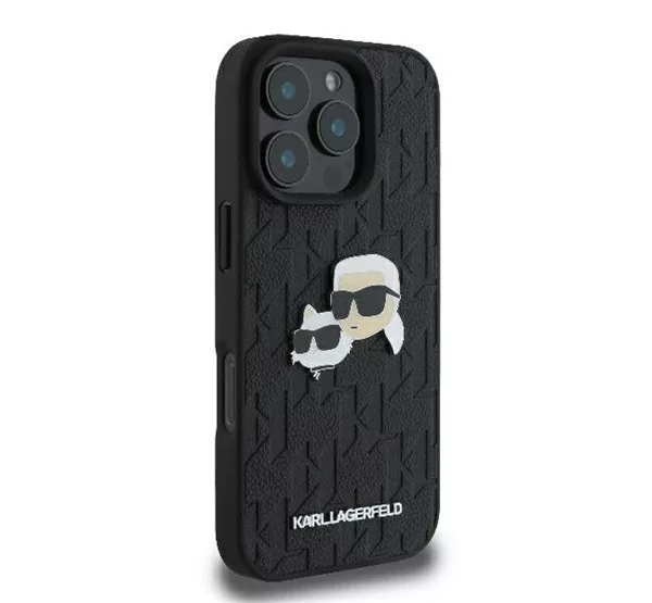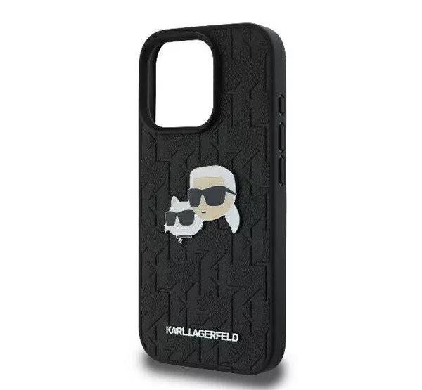 Karl Lagerfeld Monogram Karl&Chaoupette Head Pin iPhone 16 Pro kemény hátlap tok, fekete KLHCP16LPGKLKCPK