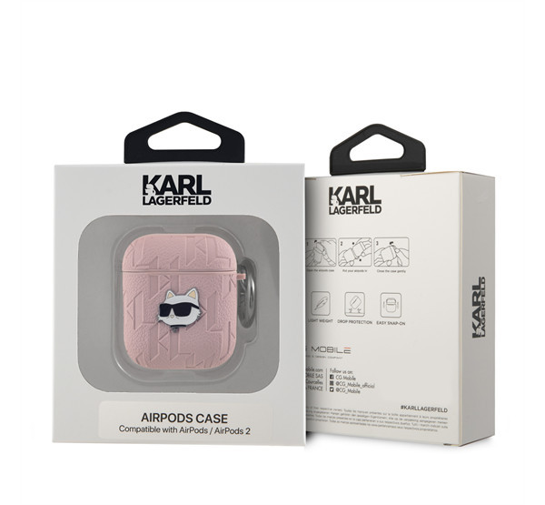 Karl Lagerfeld PU Embossed Choupette Head Apple AirPods 1/2 tok, rózsaszín