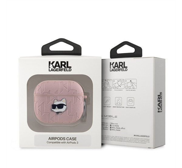 Karl Lagerfeld PU Embossed Choupette Head Apple AirPods 3 tok, rózsaszín