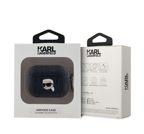 Karl Lagerfeld PU Embossed Karl Head Apple AirPods Pro tok, fekete