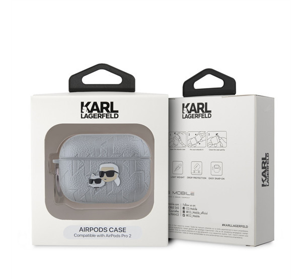 Karl Lagerfeld PU Embossed Karl and Choupette Heads Apple AirPods Pro 2 tok, ezüst Karl Lagerfeld PU Embossed Karl and Choupette Heads Apple AirPods Pro 2 tok, ezüst