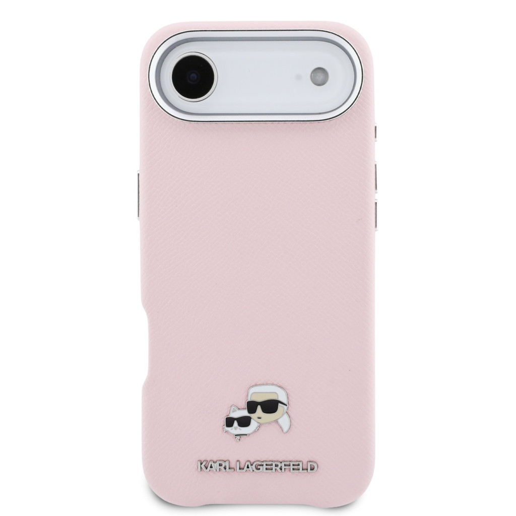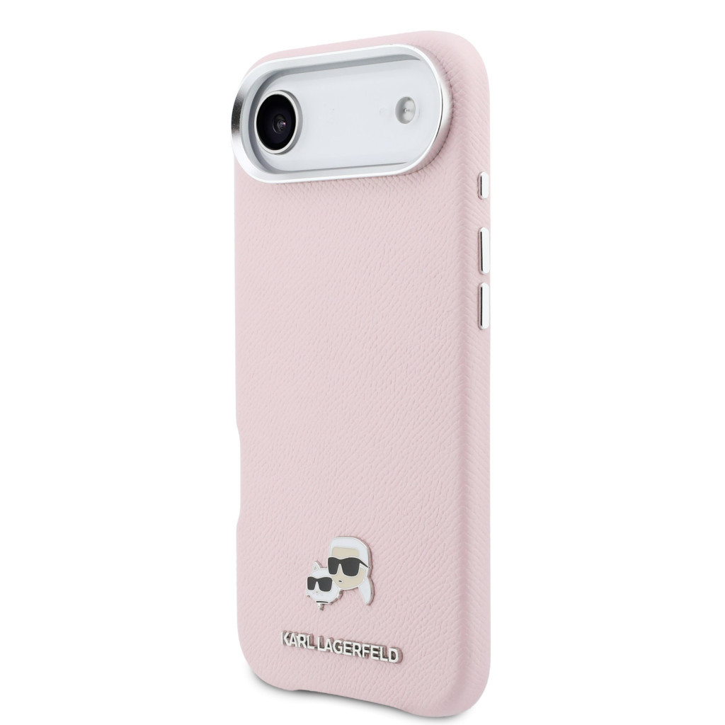 Karl Lagerfeld PU Karl and Choupette Heads Pins Apple iPhone Air (2025) mágneses tok, MagSafe, rózsaszín-ezüst