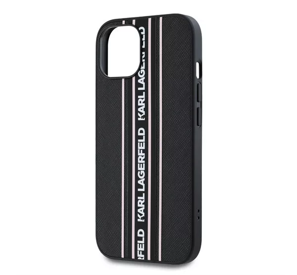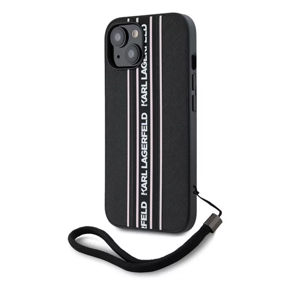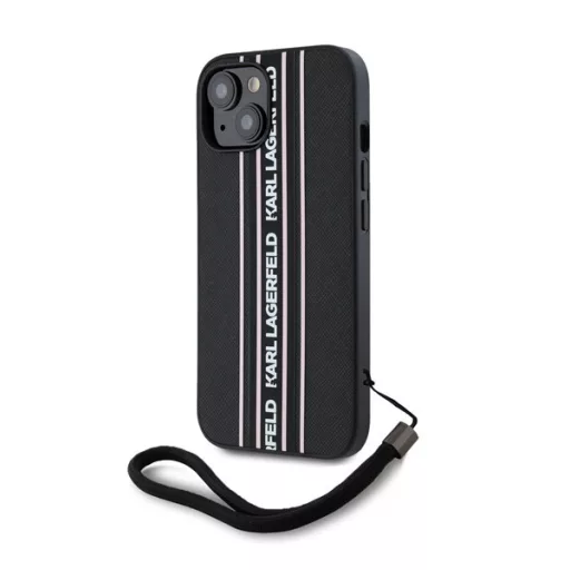 Karl Lagerfeld PU Saffiano Athleisure Apple iPhone 15 hátlap tok csuklópánttal, rózsaszín