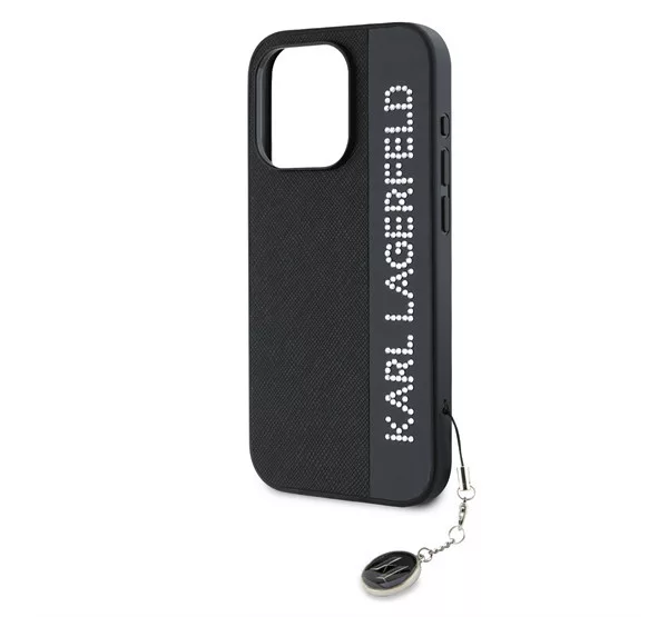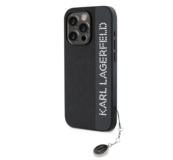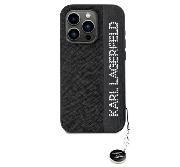 Karl Lagerfeld PU Saffiano Rhinestone Charm Apple iPhone 15 Pro Max hátlap tok, fekete