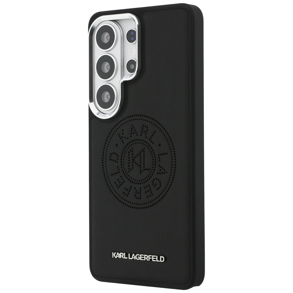 A híres Karl Lagerfeld márka exkluzív védőtokja ötvözi az eleganciát és a csúcsminőségű stílust. A tok kiváló minőségű öko-bőrből készült. A hátoldalon egy jellegzetes, kör alakú, dombornyomott KL logó található, míg az alsó részen egy finom ezüst Karl Lagerfeld logó látható.