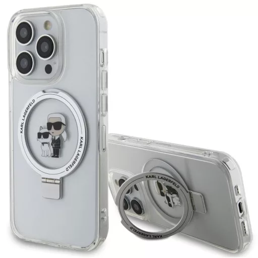 Karl Lagerfeld Ringstand Karl and Choupette iPhone 15 Pro Max MagSafe tok kitámasztóval, fehér