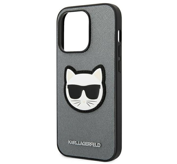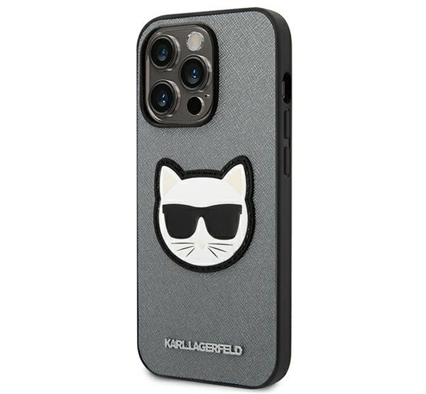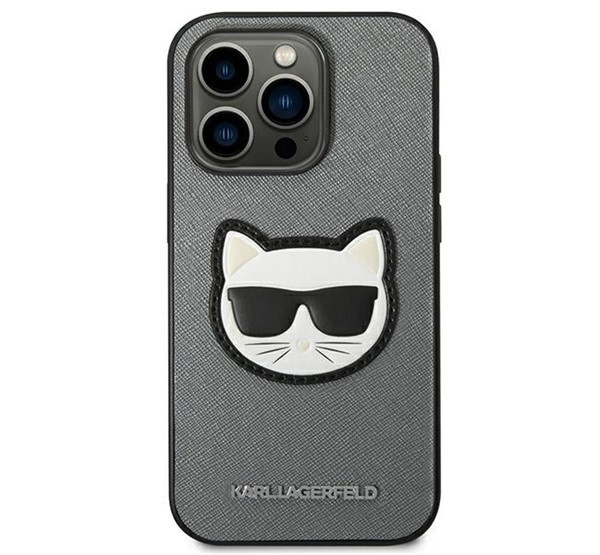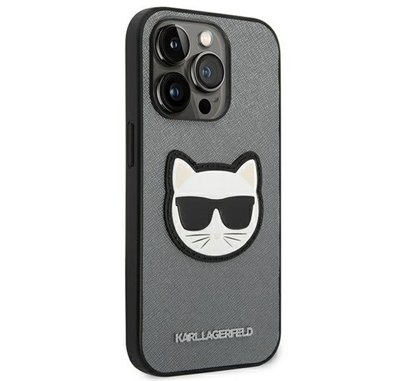 Karl Lagerfeld Saffiano Choupette Head Patch Apple iPhone 14 Pro Max hátlap tok, ezüst