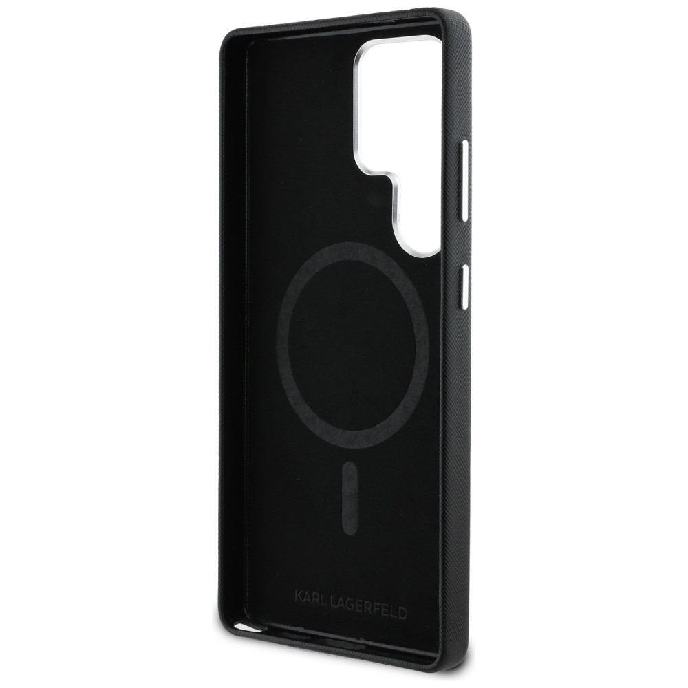 Karl Lagerfeld Saffiano Full Wrapped Elongated Metal Logo Samsung Galaxy S25 Ultra MagSafe tok, fekete