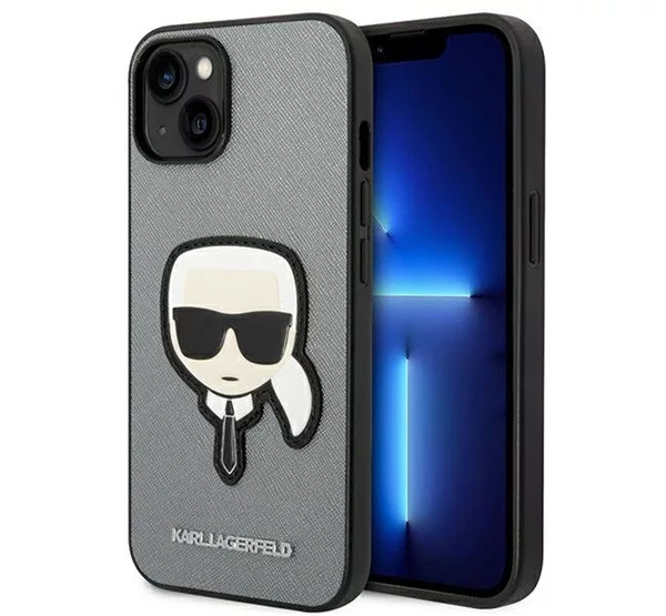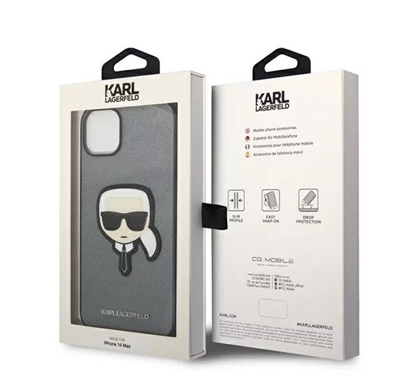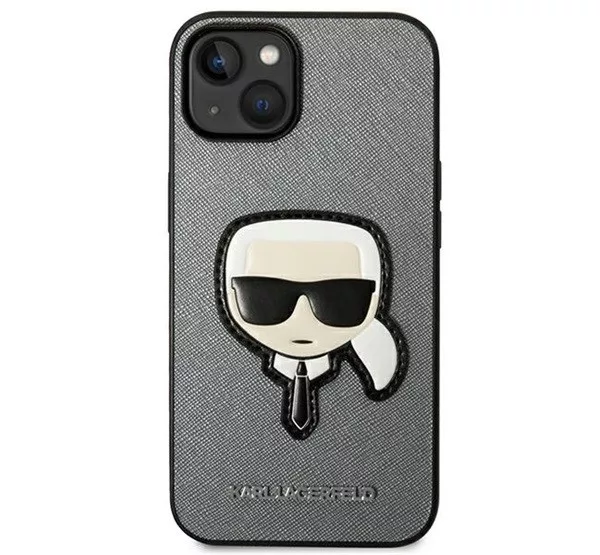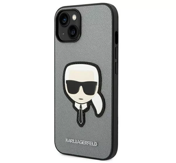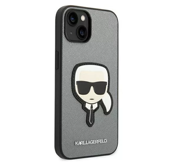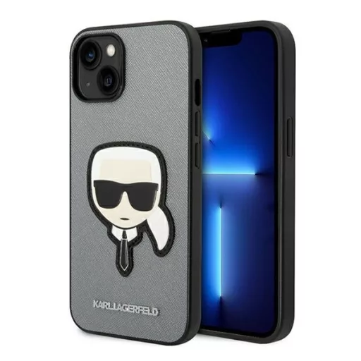 Karl Lagerfeld Saffiano Karl's Head Patch Apple iPhone 14 Plus hátlap tok, ezüst