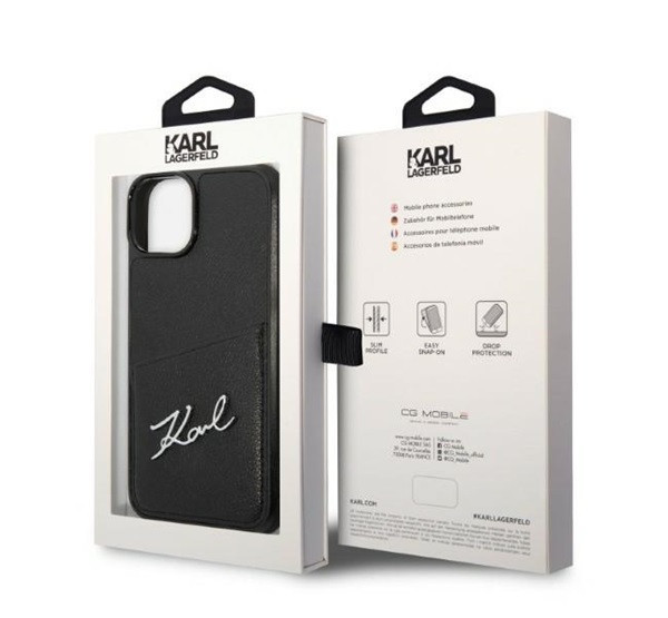 Karl Lagerfeld Signature Logo Cardslot Apple iPhone 14 Plus hátlap tok, fekete