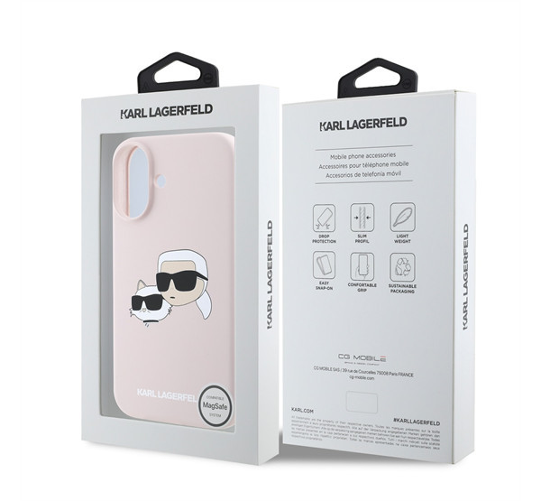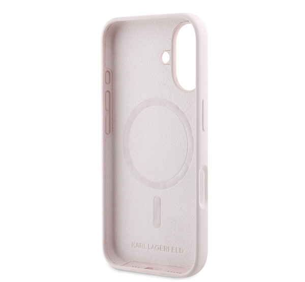 Karl Lagerfeld Silicone Double Heads Print Apple iPhone 16 Magsafe kompatibilis hátlap tok, rózsaszín KLHMP16SSKCHPPLP