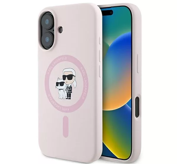 Karl Lagerfeld Silicone KC Heads Ring Apple iPhone 16 Plus hátlap tok, rózsaszín KLHMP16MSCMKCRHP