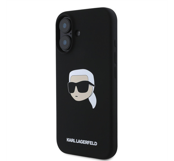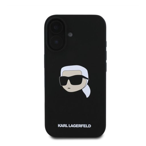 Karl Lagerfeld Silicone KL Head Print Apple iPhone 16 hátlap tok, fekete KLHMP16SSKHPPLK