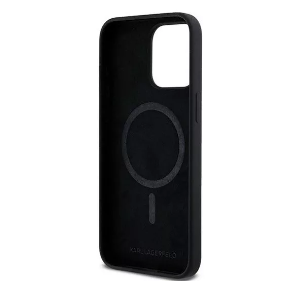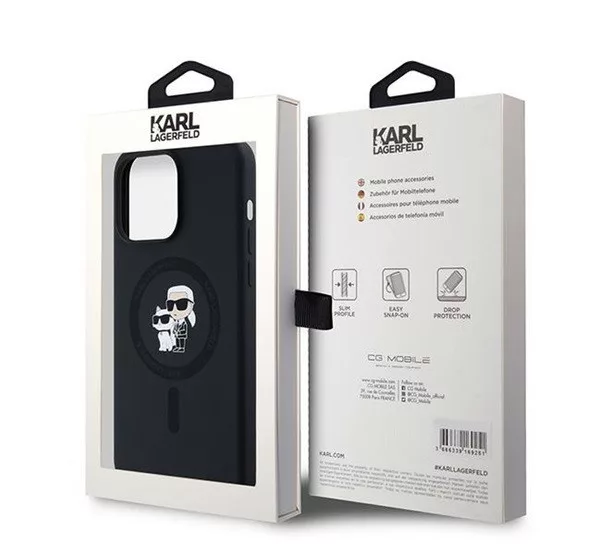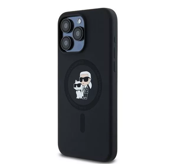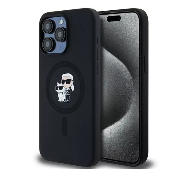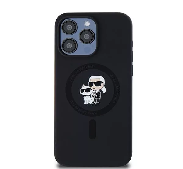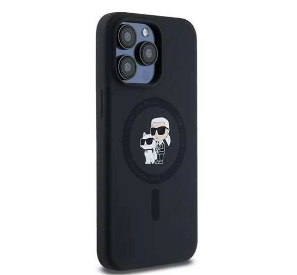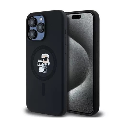 A Karl Lagerfeld Silicone Karl & Choupette Ring Apple iPhone 15 Pro Max MagSafe kompatibilis tok egy elegáns és praktikus kiegészítő, amely kifejezetten az iPhone 15 Pro Max számára készült. A fekete színű tok szilikon anyagból készült, amely kellemes tapintású, és hatékony védelmet nyújt a karcolások és ütődések ellen. A dizájnt Karl Lagerfeld és Choupette karakterei díszítik, ami egyedi megjelenést biztosít. A tok MagSafe kompatibilis, így támogatja a vezeték nélküli töltést, és könnyedén használható a MagSafe kiegészítőkkel. Az integrált gyűrűs tartó tovább növeli a kényelmet és biztonságot a telefon használata közben.