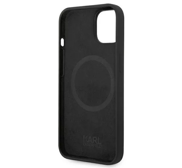 A Karl Lagerfeld Silicone Karl's Head Magsafe hátlap tok elegáns és tartós védelmet nyújt a készülékednek. A szilikon tok rugalmas és közepesen ütésálló, megvédi a telefont a karcolásoktól és ütődésektől, belsejében mikroszálas bélés található. A Karl Lagerfeld dizájn egyedi megjelenést biztosít. A MagSafe kompatibilitás lehetővé teszi a vezeték nélküli töltést. A pontos kivágások révén minden gomb és csatlakozó könnyen elérhető marad.
