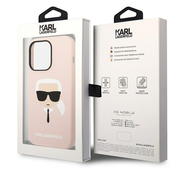 Karl Lagerfeld Silicone Karl's Head Apple iPhone 14 Pro Magsafe hátlap tok, halvány rózsaszín