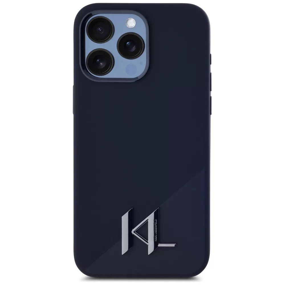 Karl Lagerfeld Silicone Shadow Metal Initial iPhone 15 Pro hátlap tok kameravédelemmel, MagSafe, fekete