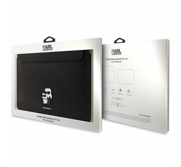 A Karl Lagerfeld Sleeve Saffiano Karl & Choupette 14" laptop tok elegáns és tartós védelmet nyújt a laptopodnak. Az fekete színű Saffiano anyag prémium minőségű, ellenáll a karcolásoknak és ütődéseknek. Az egyedi Karl & Choupette dizájn különleges megjelenést biztosít. A belső bélés puha anyagból készült, hogy megóvja a laptopot a sérülésektől. Tökéletes választás, ha stílusos és funkcionális védelmet keresel.